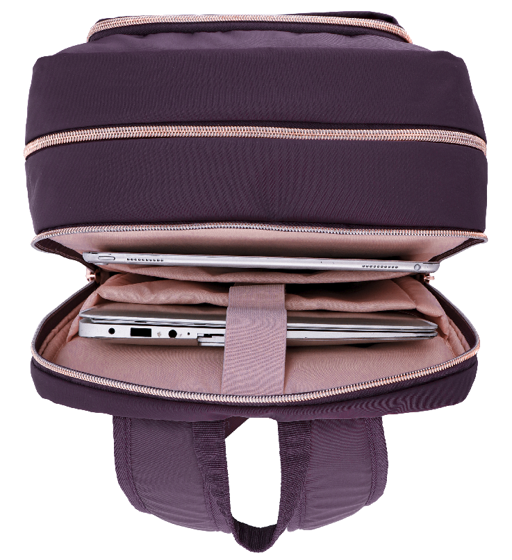 FASHION MEETS FUNCTION: KATY ROSE for women is a real eye-catcher in its sleek design and as a purple backpack with rose accents. Whether for students or professionals with its look and its intelligent functions it is a true companion.