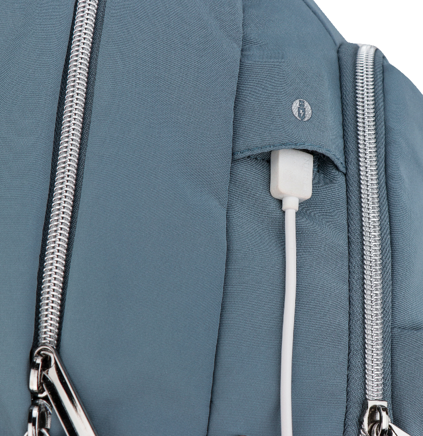 Pre-wired USB port on the side of the backpack for quick and easy charging of smartphones or other similar devices (battery not included).