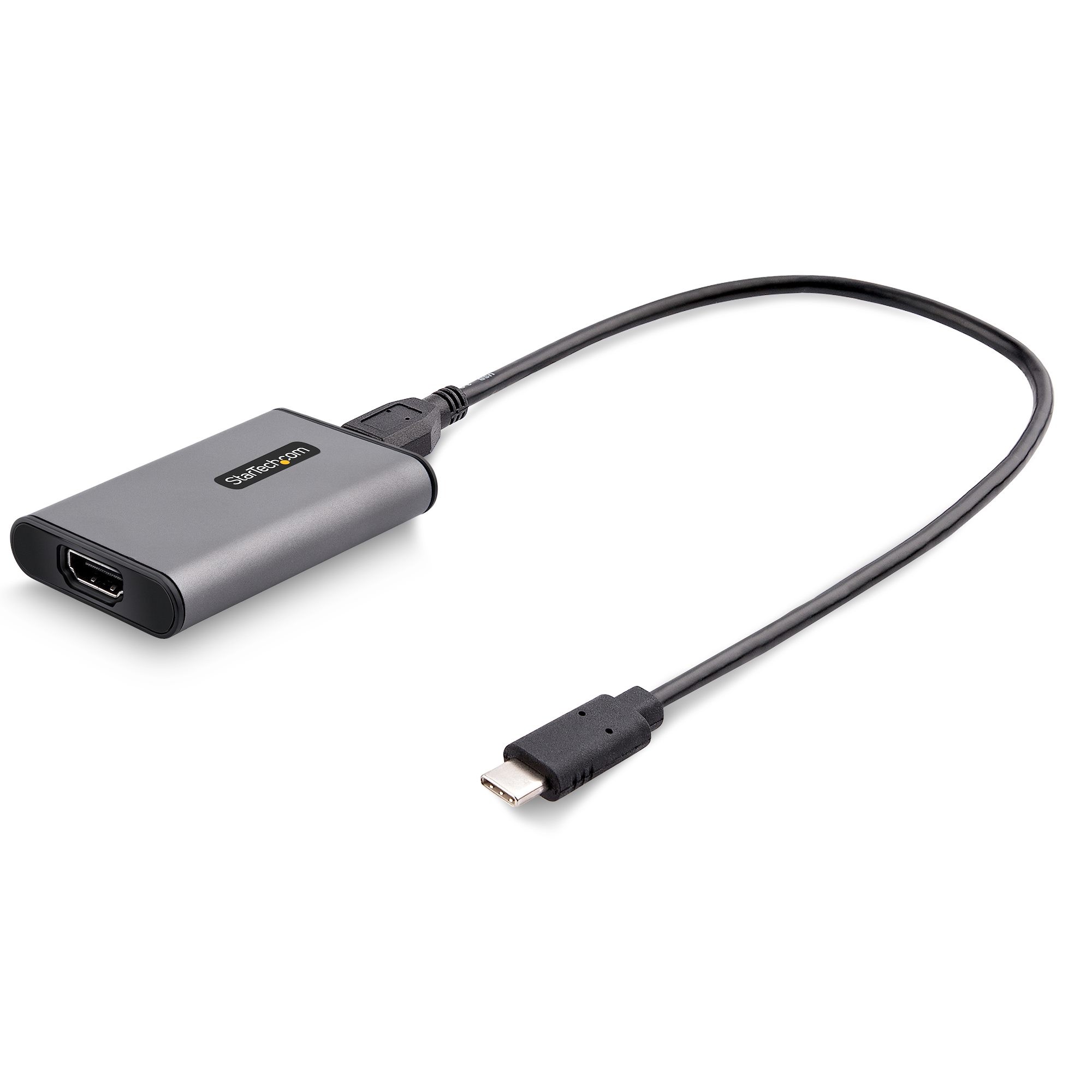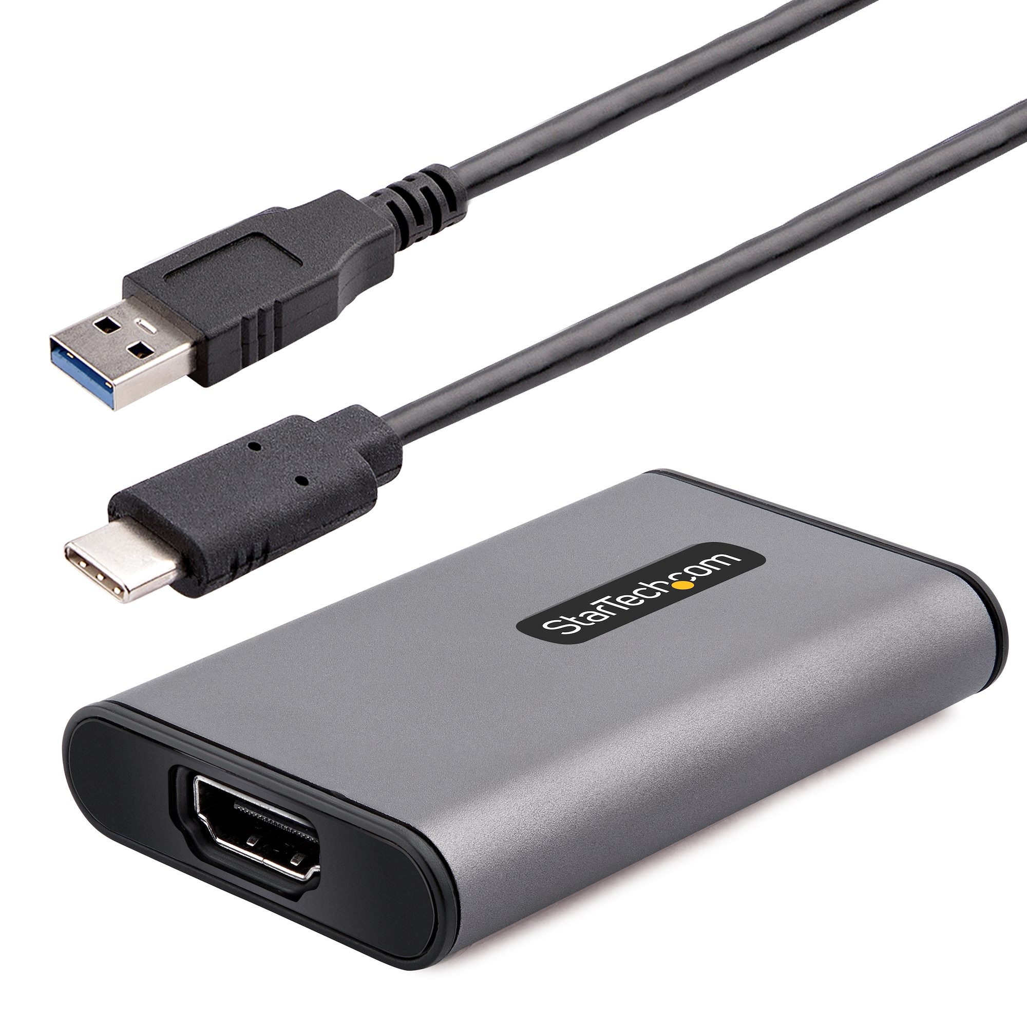 This USB to HDMI video capture device enables HDMI A/V recording, at up to 4K 30Hz, to a USB-C or USB-A enabled computer.