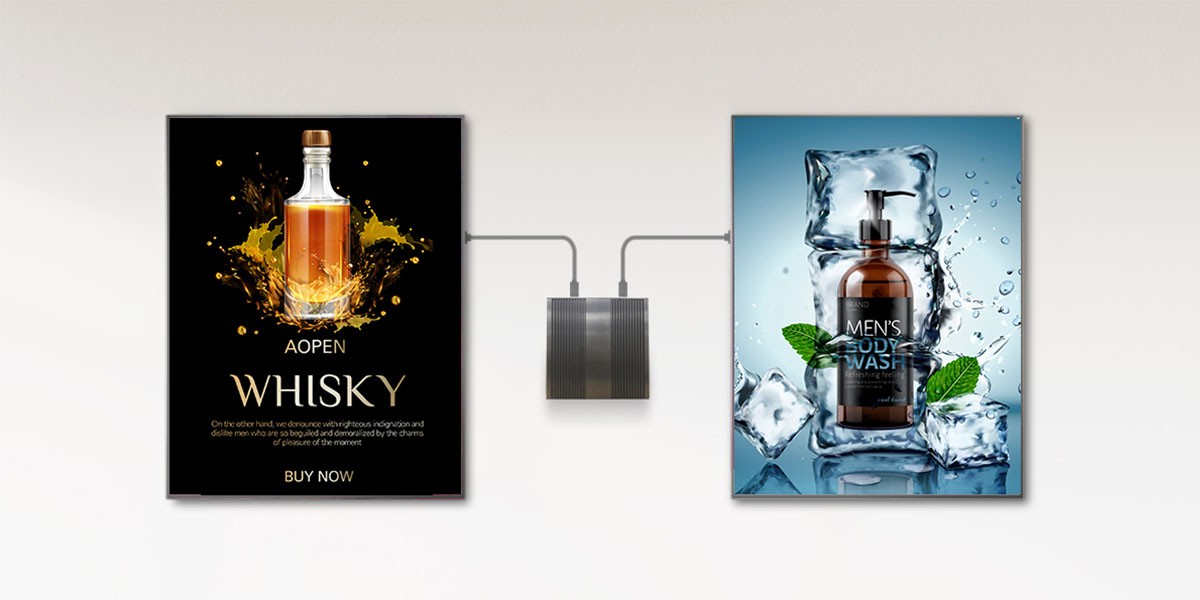 This form factor ensures easy integration into kiosks or behind screens. The AOPEN small form factor is a standard that is used for our Mini PC design language. The size of our Mini PC series is set to a maximum of 166x48x177 mm. Its width is set to 166 mm. Do the math, and you will see that AOPEN Mini PCs are an investment that will last, even after replacing the item in a kiosk or mount that already exists.
