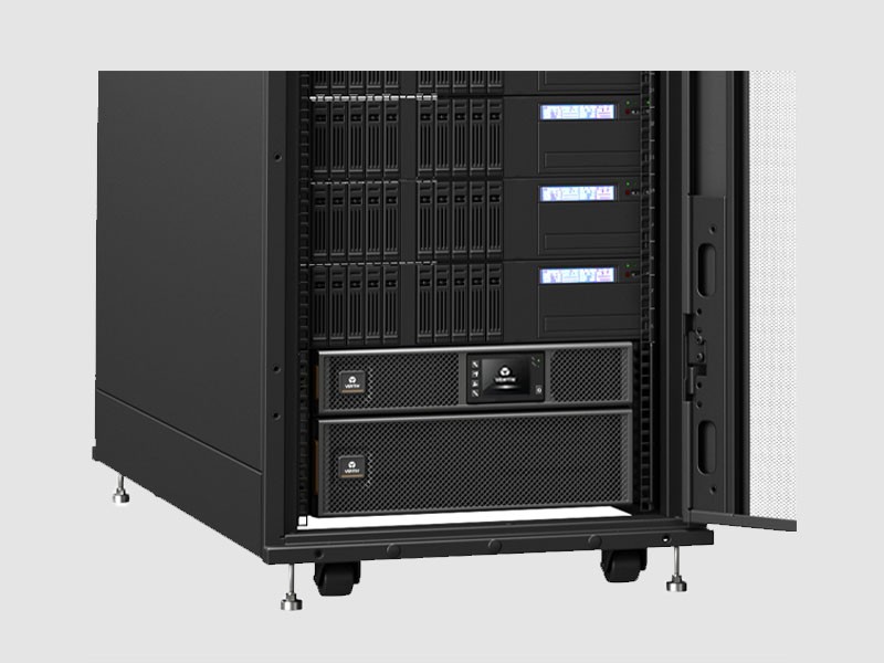 The Vertiv Liebert GXT5 TAA UPS is ideal for protecting servers and routers in rack or tower configurations in small offices, network closets and remote locations. The compact Vertiv Liebert GXT5 TAA UPS takes up only 2U of rack space and 15.7 to 21.3-inch depth. A rack mounting hardware kit is included with each unit, as well as a base for tower installation in open environments.