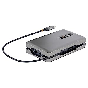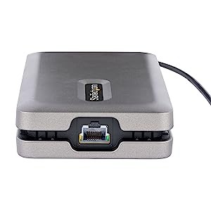 The lightweight docking station features a built-in 10 in (25 cm) USB-C host cable for added setup flexibility and to reduce port strain