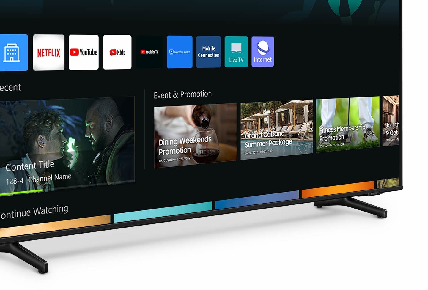 Introducing the HBU8000, a new hospitality TV delivering premium hotel entertainment experiences. Featuring detailed UHD picture quality and access to top streaming services, Samsung’s elevated in-room content solution adds a personal touch to each stay, turning new guests into repeat visitors.