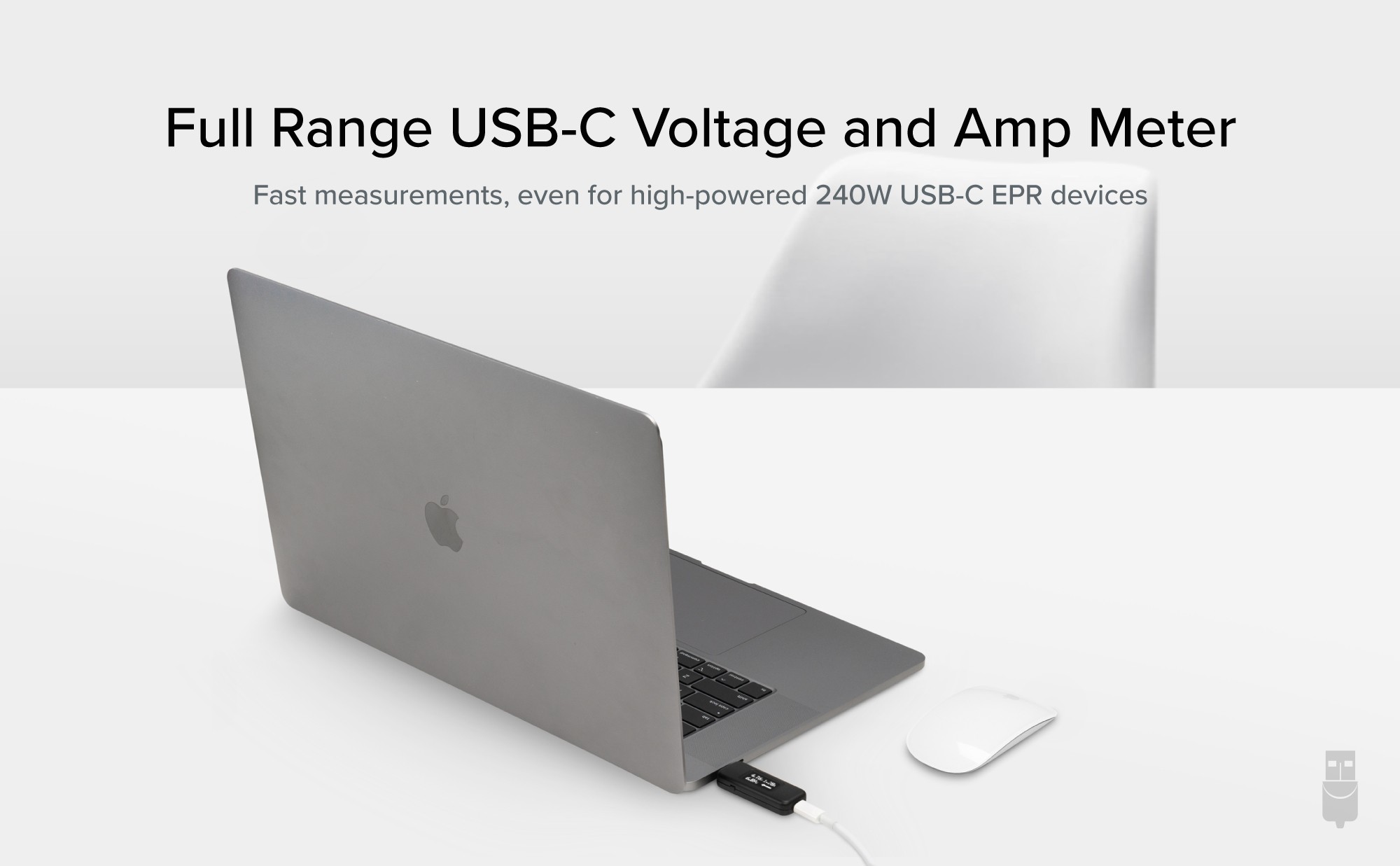 This meter is a transparent interposer–it should not interfere with the USB data (1.1 through 3.1 Gen 2), USB-C Alternate Mode video, or USB-C charging. The meter can be used in-line with USB-C docking stations, chargers, and other USB-C accessories. The meter is able to achieve this without interfering with normal USB-C operation as it only taps into the power (VBUS) and ground connections to measure values and leaves the data lines untouched.