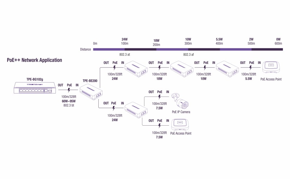 • TRENDnet PROTECTION: The TPE-BE200 2-Port Gigabit PoE++ Extender comes with 3 year TRENDnet Manufacturer