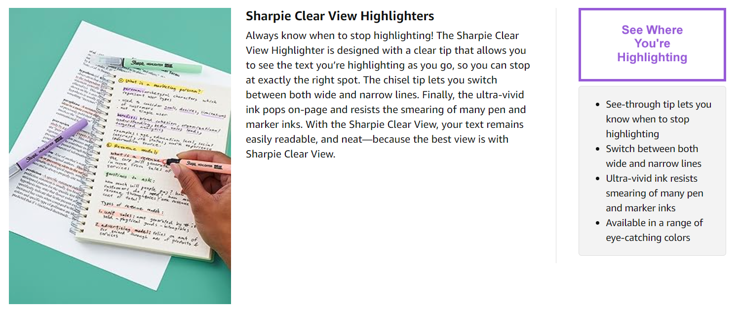 Clear, See-Through TipTransparent tip helps you stay focused on the desired text to highlight as you glide across the page. |