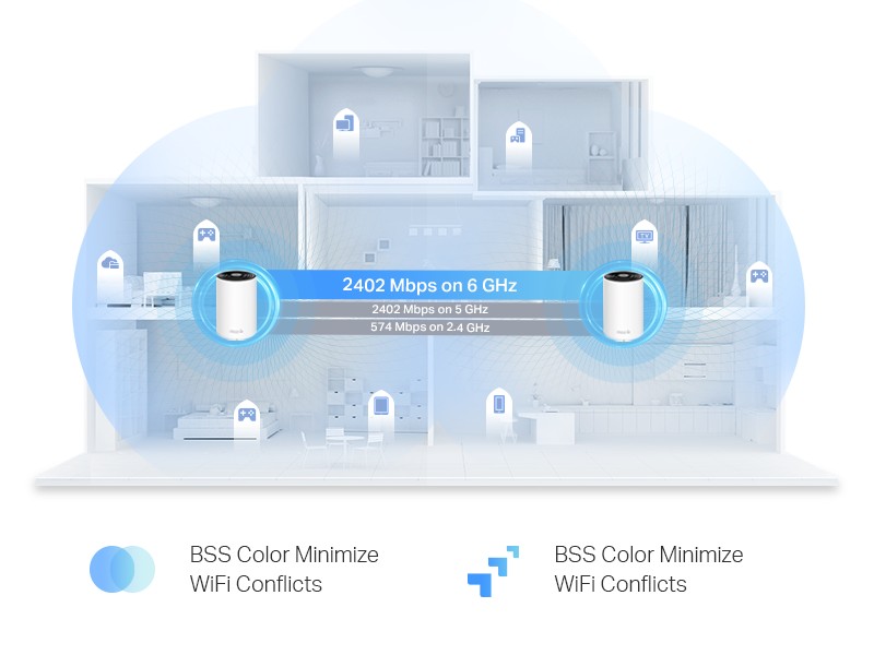 Experience the latest frequency of WiFi 6, eliminating interference from all legacy devices. The 6G is used alongside with other bands to serve as the backhaul connection between the Deco units.