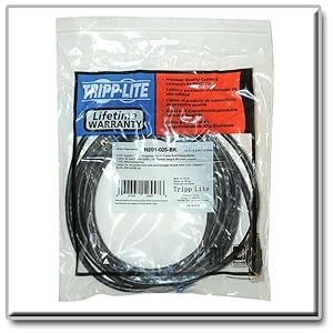 Lifetime warranty and environmentally responsible designFor peace of mind, this 25 feet Tripp Lite Cat6 Gigabit Snagless Molded Patch Cable comes backed by a lifetime warranty. The N201-025-BK is manufactured in compliance with strict RoHS specifications, reflecting Tripp Lite’s commitment to environmental responsibility. Accept no substitutes! Your Tripp Lite cable will be shipped to you in its original Tripp Lite packaging (poly bag with Tripp Lite logo; see photo). This is your assurance that the cable you purchase will deliver the superior performance you expect. And if you don't see this packaging, it's not a genuine Tripp Lite cable! |