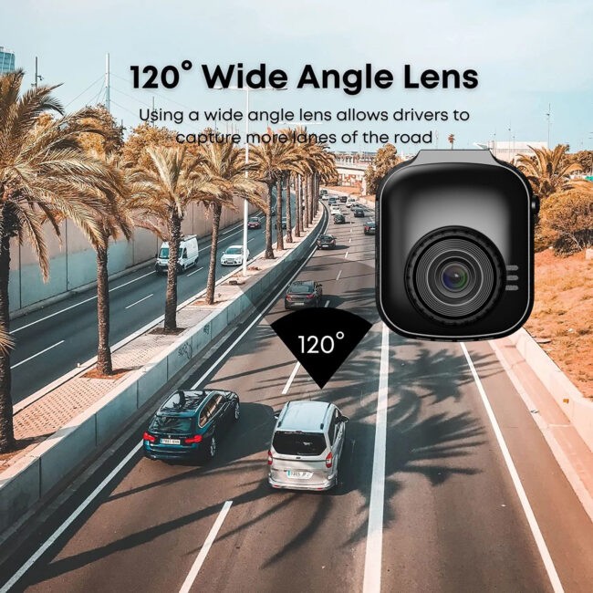 A 120° viewing angle will allow the dash cam to capture more lanes on the road. This will help users capture those small details, such as license plates.