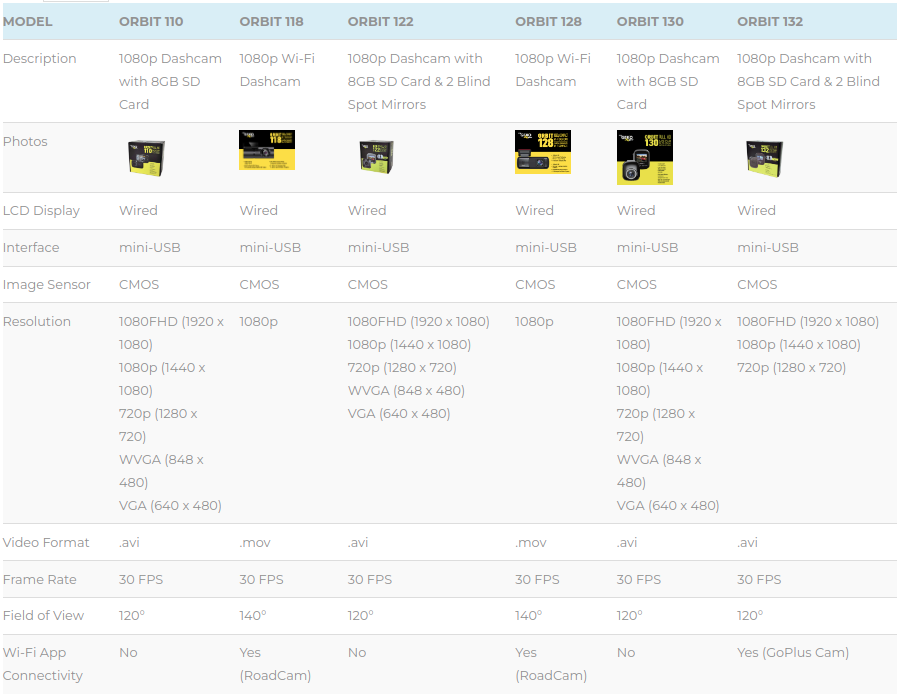 The Orbit 130 is a reliable starter dash cam to fit in your vehicle. This compact and sleek model allows for a clear windshield space to prevent you from driving with any distractions. Recording at 1080P ensures clear high definition video recording for day and night. With 120° wide angle lens, capture a wider field of vision to capture more lanes of the road. A G-Sensor is built into dash cam to detect an impact, drastic breaking, and sharp turns which will automatically lock onto these emergency files so it won’t be loop recorded over. The 130 supports external storage up to 32GB micro SD card (5 hours of recording). A 8GB micro SD card is included with the package so you’ll be able to quickly install the Orbit 130 in your car and ready to capture your drives!
