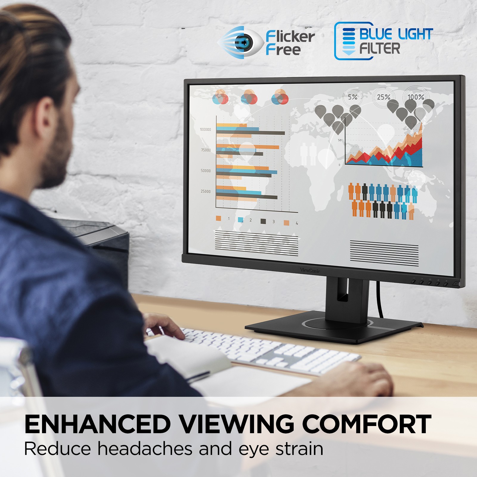 Flicker-Free technology and a Blue Light Filter help to eliminate eye strain from extended viewing periods.