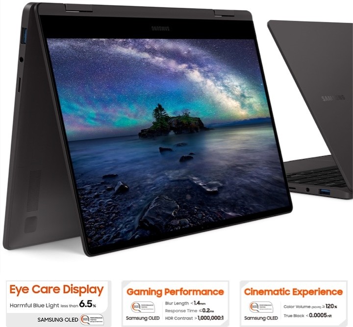 Take productivity to-go with a 2-in-1 design that combines the power of a laptop with a Super AMOLED touchscreen that’s up to 33% brighter.