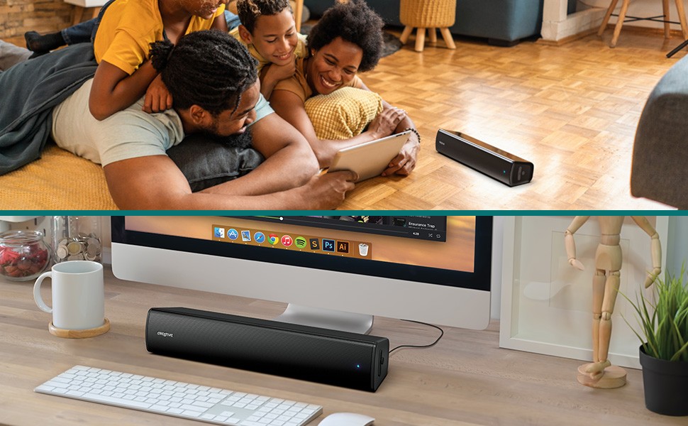 Creative Stage Air V2 is tuned to deliver powerful and clear audio with two improved custom-tuned full range drivers and an oversized radiator.