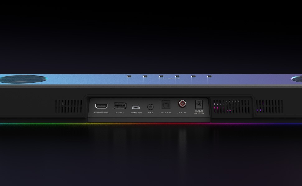 Connection is seamless too with USB audio, convenient HDMI ARC, Bluetooth 5.0 technology for wireless audio streaming, optical-in, SXFI-out, and a 3.5 mm AUX-in for analog audio. The soundbar also comes with dual built-in beamforming microphones if you want to quickly hop onto a chatroom on Discord with your team, or even for your online meetings.