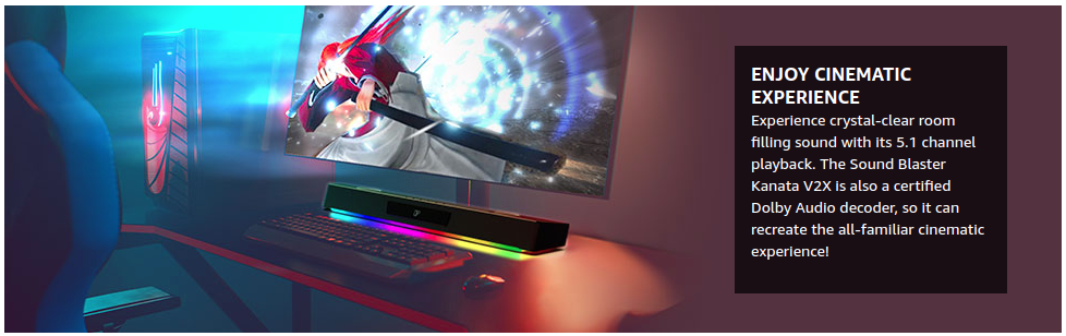 Whether you are gaming, watching movies, or listening to music, bring all your entertainment to life with the Sound Blaster Katana V2X!