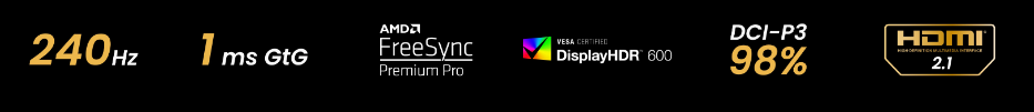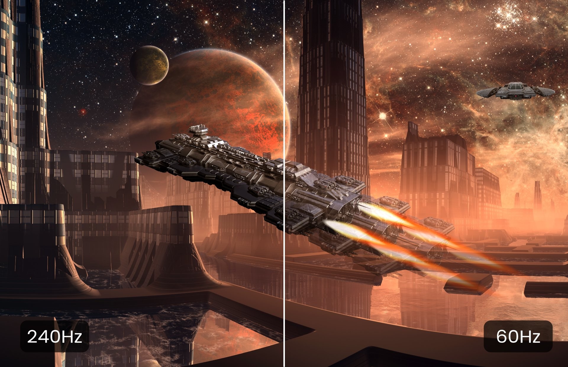 The fast 240Hz refresh rate combined with AMD FreeSync Premium Pro deliver fast responses for smooth gaming without tearing