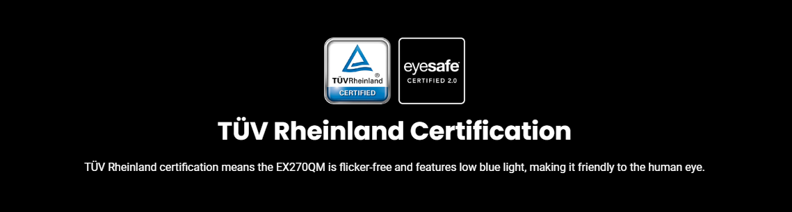 With 1ms GtG fast response time, the EX270QM delivers next-generation clarity without ghosting