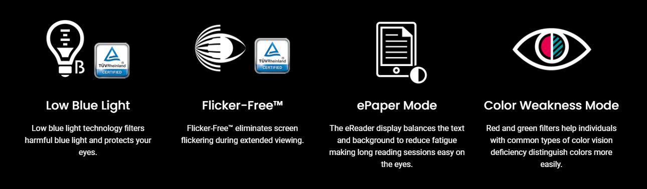 Eye-Care Tech makes watching easy on the eyes for greater comfort during long gaming sessions.
