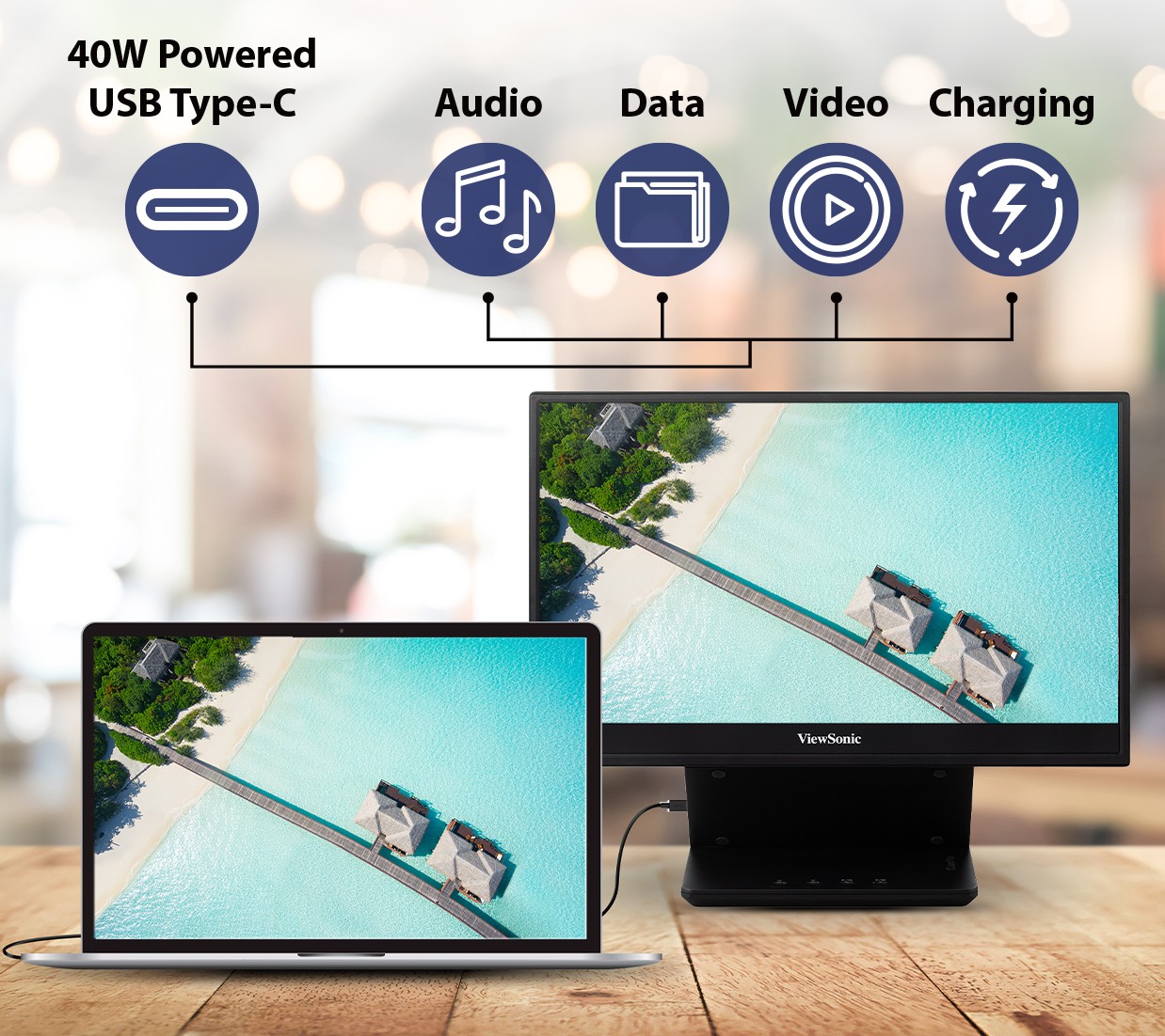 With USB-C 40W two-way power, this monitor can be powered by a laptop, or it can deliver power to a laptop or mobile device via pass-through charging when plugged into a USB-C power bank or AC adapter and outlet.
