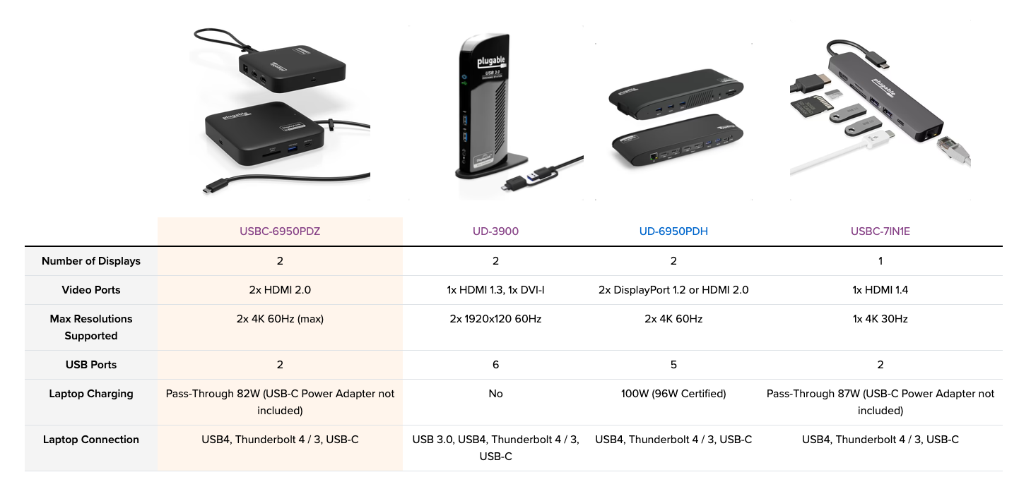 A somewhat unique approach to powering a docking station, the USBC-6950PDZ doesn’t have its own power supply. Instead, it uses the USB-C power cord that came with your laptop.