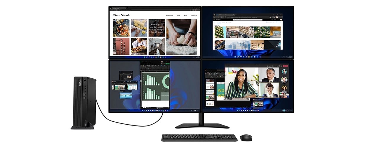 With the ThinkCentre M90s Gen 3, you can connect to legacy peripherals (up to four monitors) and have the option to tap into the latest WiFi 6E* connectivity. You can also opt for dual solid-state drives (SSD) storage for improved responsiveness and power consumption, as well as faster boot ups and application launches. Plus, with toolless access design, optional Smart Cable, there are ample ports and expansion slots to meet your ever-changing IT needs.