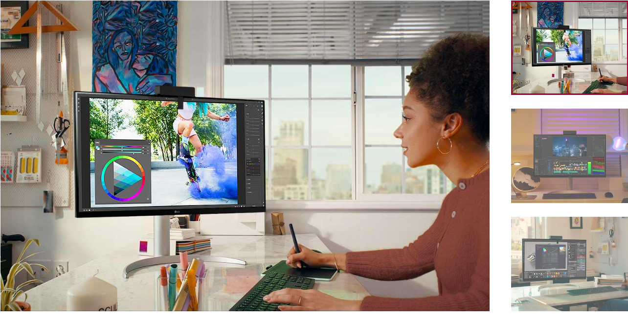 The ergonomic stand makes it easy to flexibly adjust the height, tilt, and pivot of the screen in the optimal position for you.