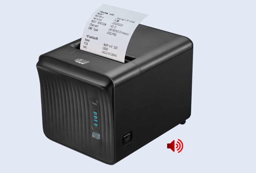 Low on thermal paper, have a paper jam or a printing error? ... The NuPrint 330 has loud speaker and red LED f o r reminder paper printing ,error, lack of paper, without tearing paper warning