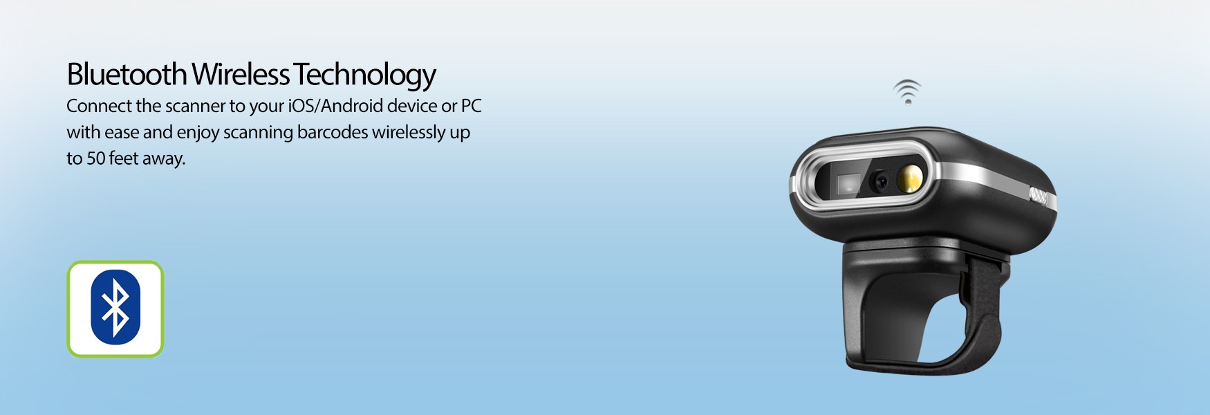 Connect the scanner to your iOS/Android device or PC with ease and enjoy scanning barcodes wirelessly up to 50 feet away.