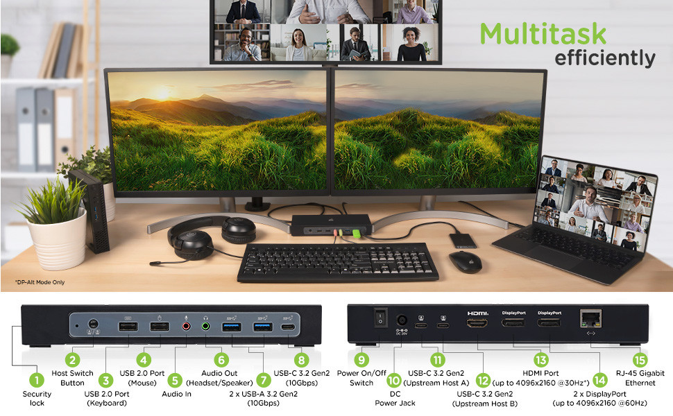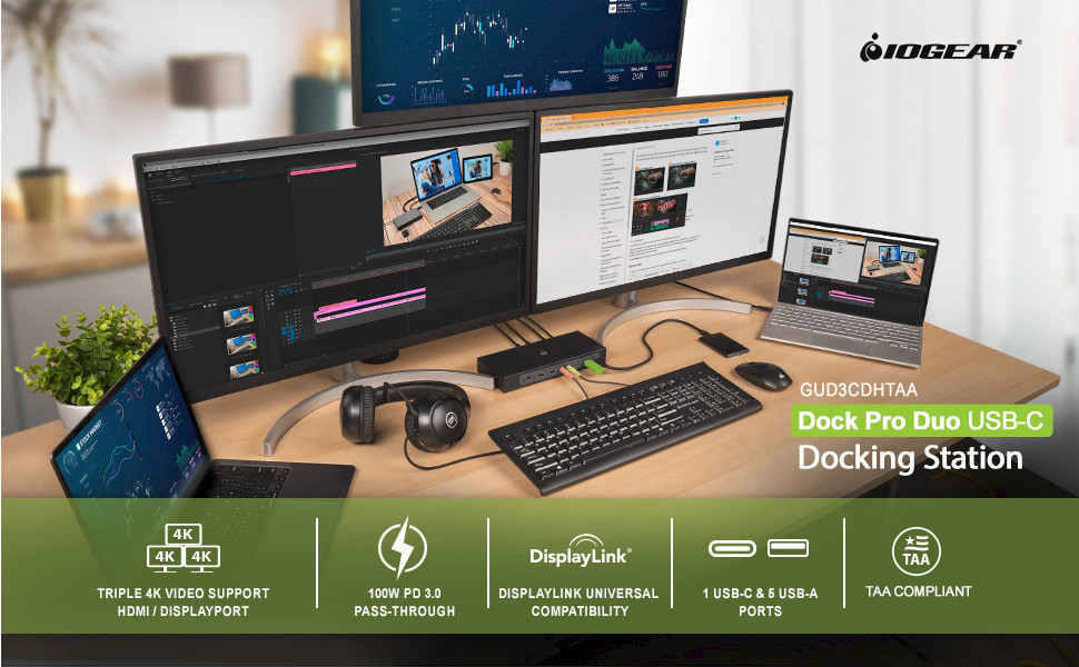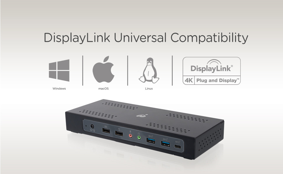Dock and expand your USB-C laptop with 9 port options Up to Dual 4K displays via HDMI or Displayport USB-A and USB-C ports for peripheral devices DisplayLink chip allows for Windows and macOS compatibility Power button TAA Compliant Power delivery 3.0 Up to 100W