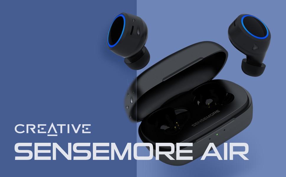 Introducing the Creative Sensemore Air, our lightest and smallest in the True Wireless lineup, designed with a compact clamshell-shaped charging case for your travels.