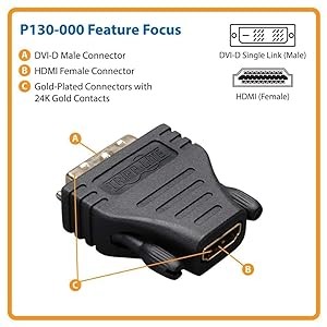 The P130-000 is manufactured using top-quality materials. Gold plated connectors, 24K Gold contacts and a molded, rubberized plastic housing ensure long life and durability. Slotted thumbscrews allow for easy installation in close quarters.
