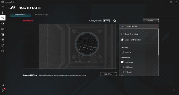 Install Armory Crate and display your choice of system temperatures, voltages, and fan speeds from the beating heart of your rig.
