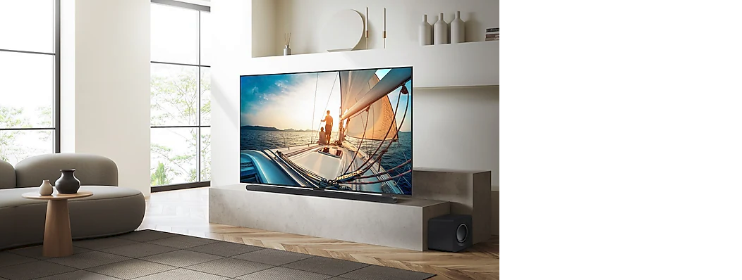 Amp up your audio with the greatest duo of all time—Samsung TVs paired with a Samsung soundbar. With Q-Symphony, your TV speakers paired with Q-Series and S-Series soundbar operate as one. Together, they can optimize all the channels to bring you a masterfully orchestrated sound experience. ⁴