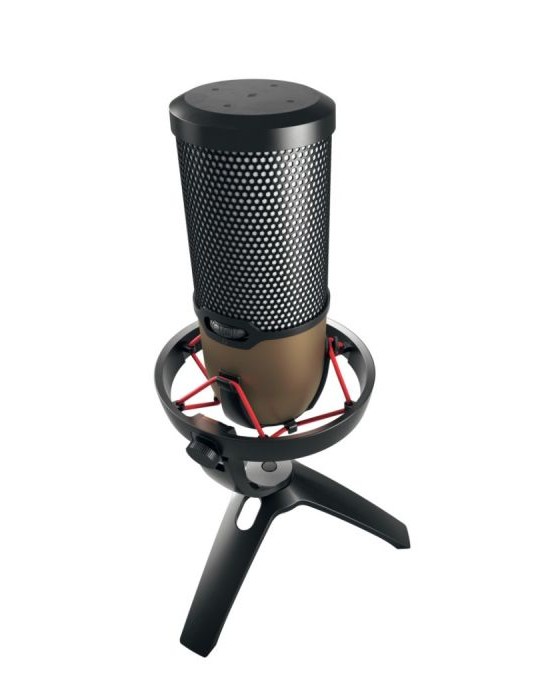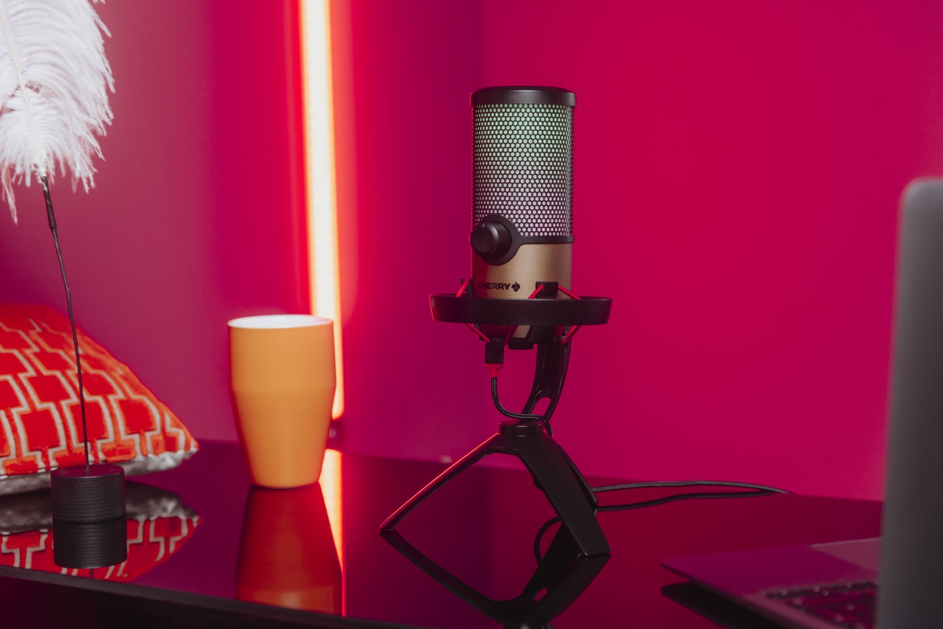 The dual-tone color of matte black and tasteful copper gives the CHERRY UM 9.0 PRO RGB a sophisticated look. The stylish USB microphone received the “Special Mention” German Design Award in “Excellent Product Design” for the “Entertainment” subcategory. Thanks to its stable, tripod-designed stand made of solid metal, the USB microphone is always secure in place when gaming, vlogging, or streaming. On top of that, it is easy to use: Simply take the mic out of its plastic-free packaging, connect it via the included USB cable, and you're ready to go. Unpack, plug in, and record – without the need to install any software. The chic gaming microphone is suitable for PC, PS4, PS5, and Mac.