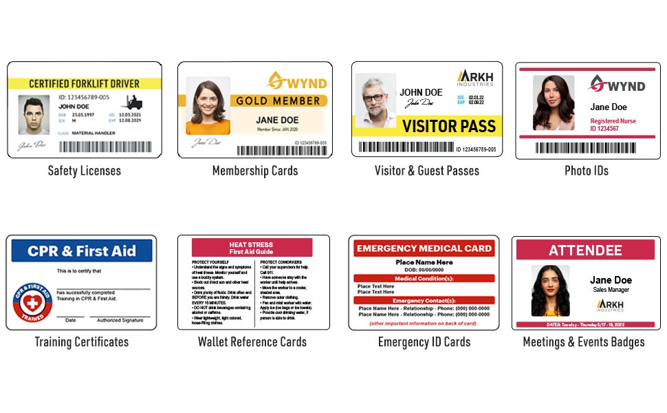 Use for photo IDs, membership cards, event badges, safety permits, business cards, medical ID cards and more. Waterproof cards & badges are made out of a durable 11 mil plastic material that is printable using standard laser printers.