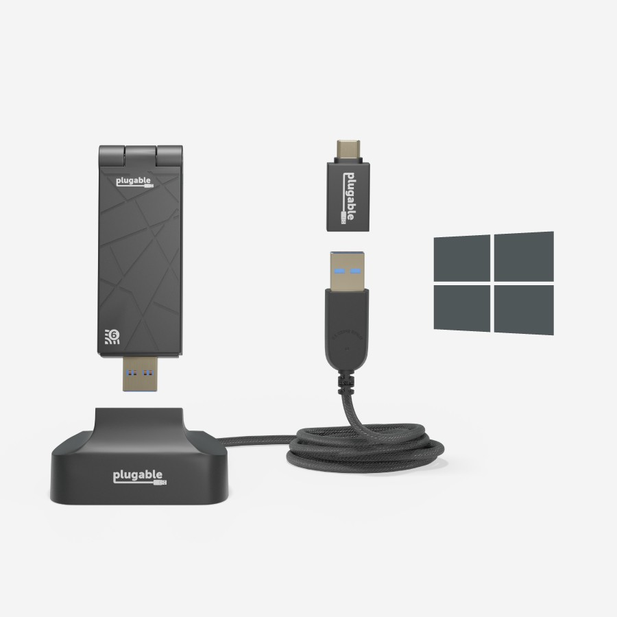 This Plugable WiFi USB adapter for PC connects to the USB port on your computer (USB-A to USB-C adapter included). Upgrade to Wi-Fi 6 on systems with an older, slower PC WiFi antenna, or no antenna at all. Perfect for folks building a PC