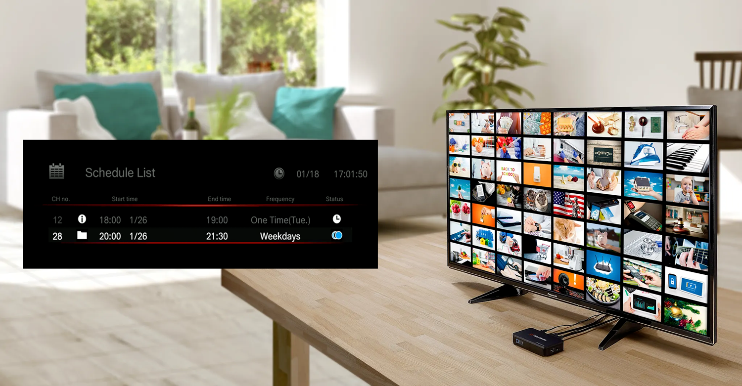Set a time to record a TV program or sporting event even when you’re not in front of the TV. The EzRecorder 330 supports routine scheduling to eliminate repeated setups. After a one-time setup, you can effortlessly record your favorite TV shows or team games and enjoy them later.