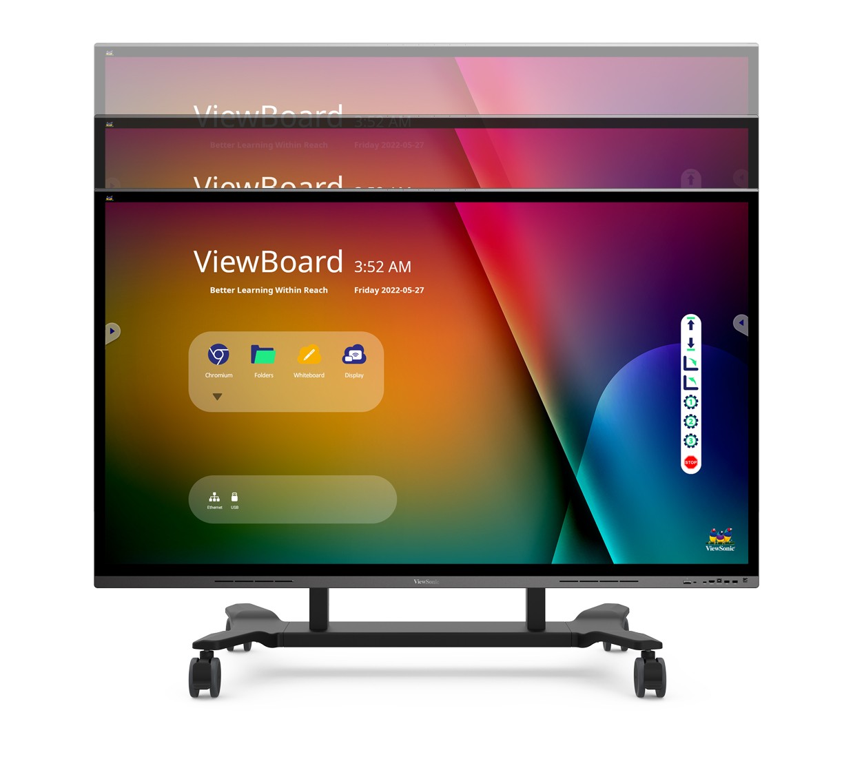 Featuring smooth motorized lift, the ViewSonic ® VB-STND-007 motorized trolley cart securely accommodates VESA compatible displays ranging from 55" to 86" screen sizes and weighing up to 165 lbs. With integrated on-screen control, the cart can be manipulated directly from the ViewBoard touchscreen (IFP50 series only), allowing you to easily raise or lower the display with a single tap. With sturdy, quiet wheels, this mobile cart lets you move the display from room to room for easy sharing of resources. This product is ADA compliant.