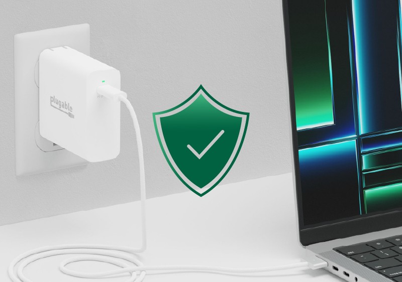 The USB C charger block that came with your laptop is fine, but it isn’t your only option. Maybe you’ve lost it, you want a spare, or you just want a future-proof charger that’s a little smaller and doesn’t get as hot. The Plugable Type C charger fast charging has you covered.