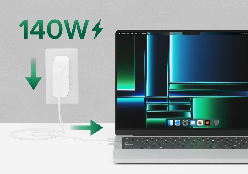 Intelligent power handling ensures safe, efficient charging at your device's optimal level up to 140W.