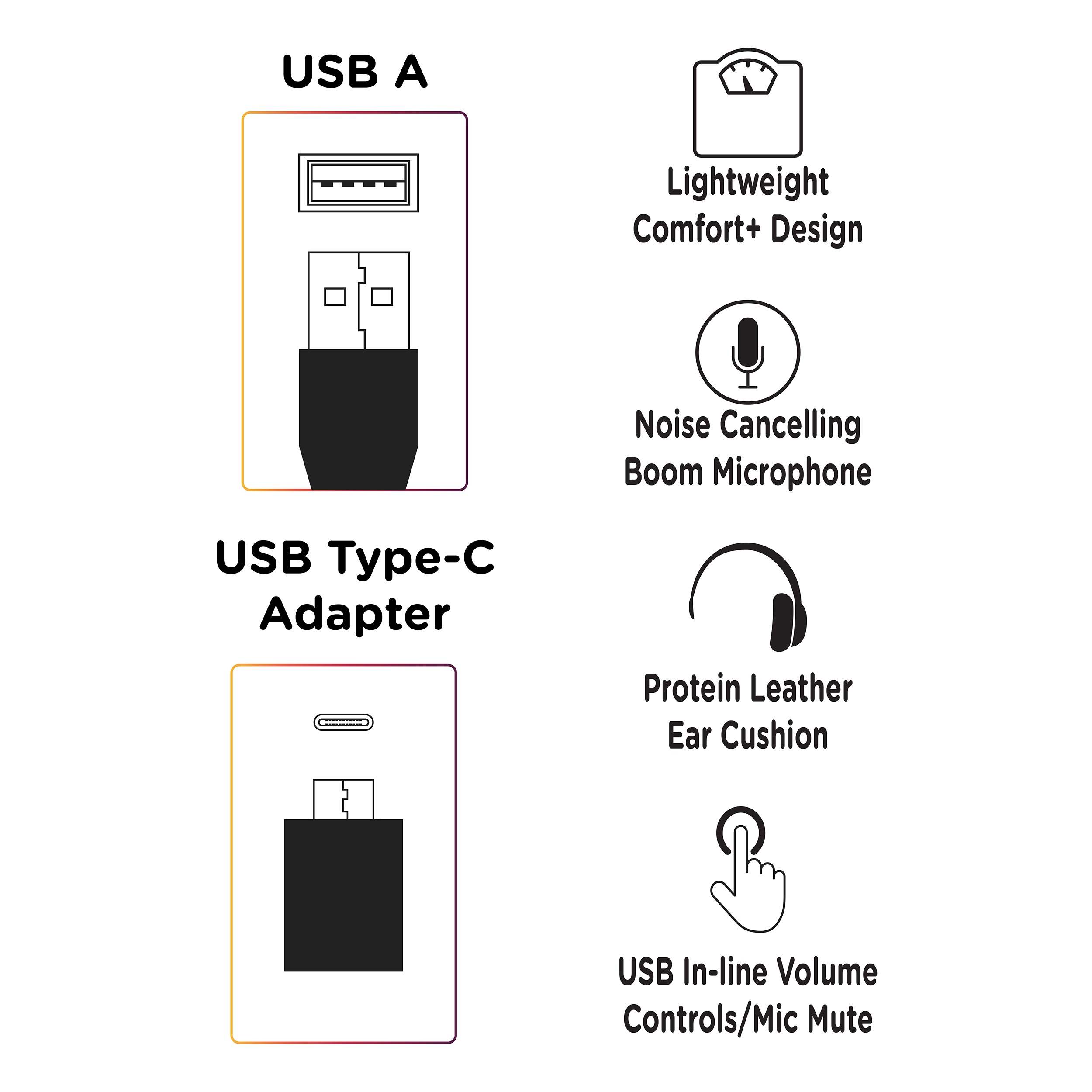 Our Connect USB Mono Headset with Noise Cancelling Boom Microphone comes complete with a 6 Ft Cable and USB Connector. We also included a USB Type-C Adapter so you will be able to use our Wired Headset on your PC/Mac, Phone, Tablet or Laptop with an available USB A or Type-C Port.