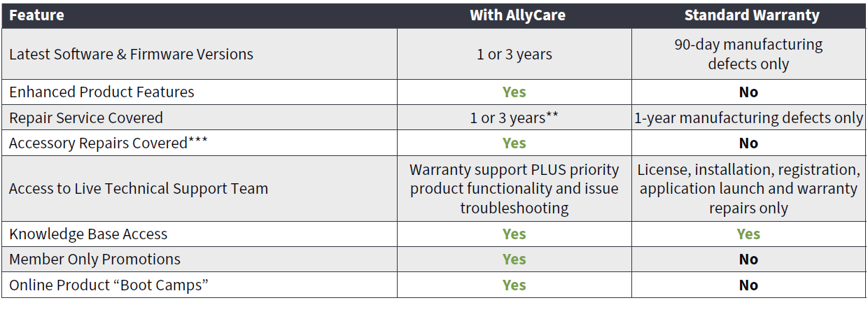 Buying a 3-year AllyCare support contract is like getting 7 months free compared to your customer renewing a 1-year AllyCare support contract 3-years in a row.