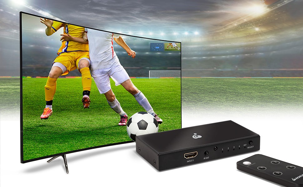 Switch between different devices from the confort of your couch using the included IR remote. With the built in IR extension port, connect an IR extension cable (not included) to place the 4-port switch out of sight to keep your entertainment center neat and tidy.