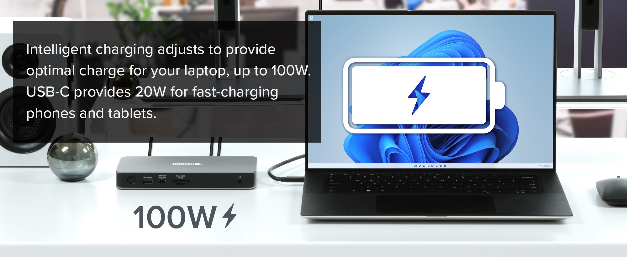 Intelligent charging adjusts to provide optimal charge for your laptop, up to 100W.