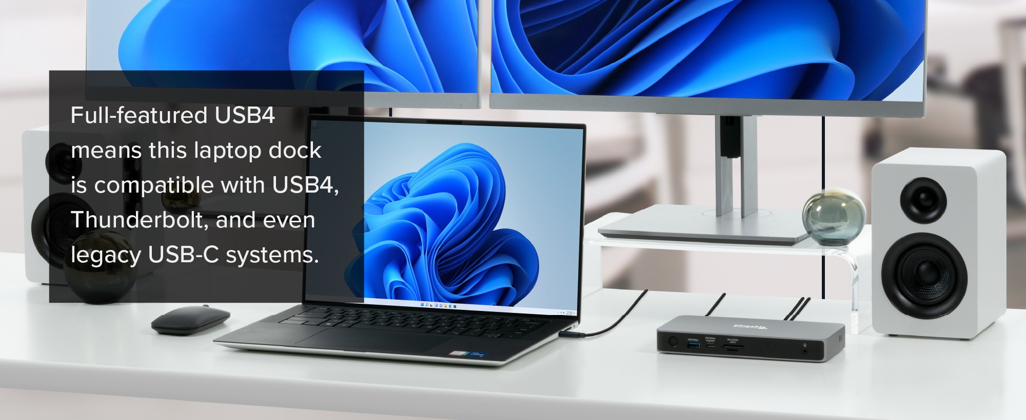 Full-featured USB4 means this laptop dock is compatible with USB4, Thunderbolt, and even legacy USB-C systems.