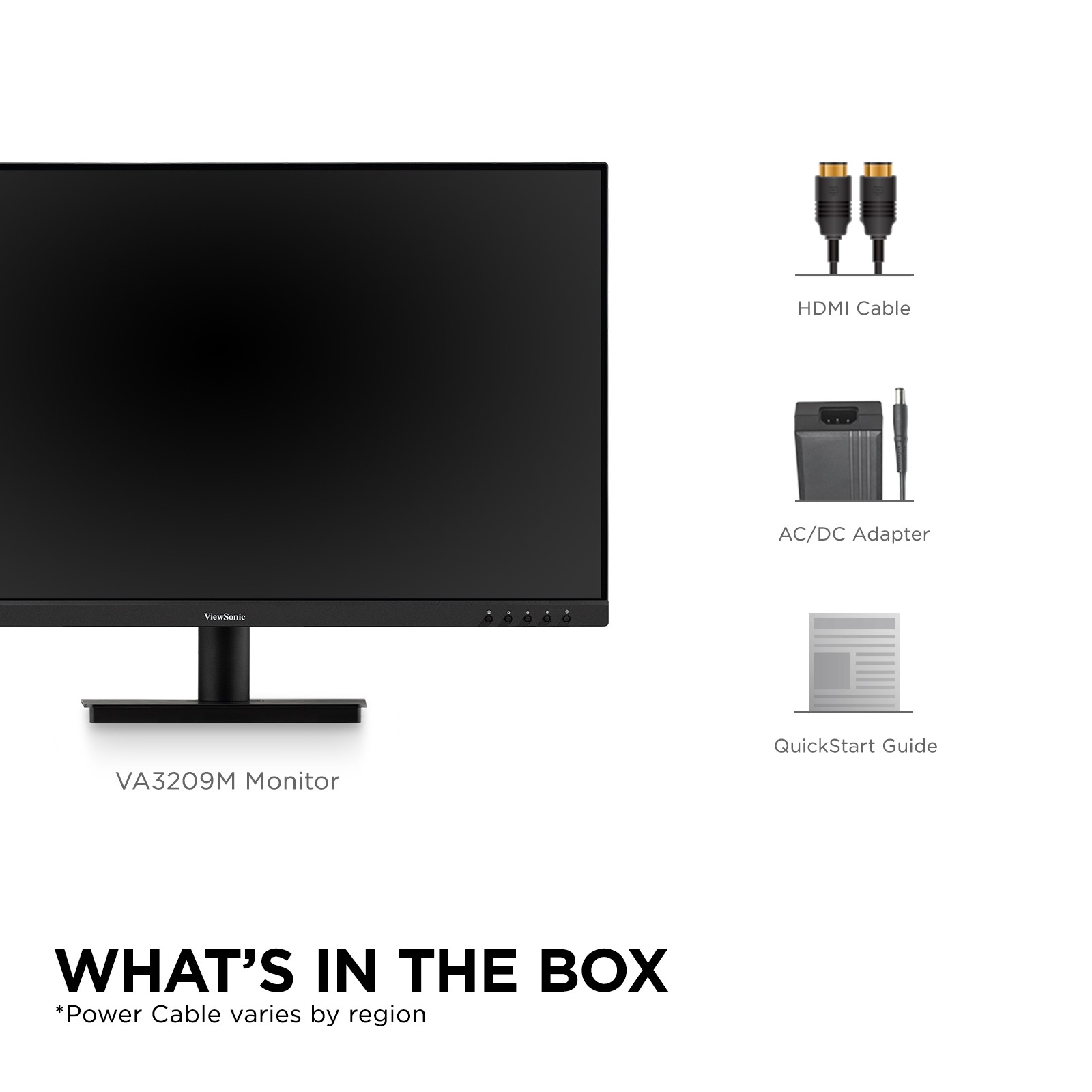Get the bigger picture with the ViewSonic® VA3209m home office monitor. Featuring an expansive 32” (31.5” viewable) display with SuperClear® IPS panel technology, this immersive monitor delivers stunning brightness and contrast at almost any viewing angle. With a minimalist edge-to-edge screen and a three-sided frameless bezel, creating a seamless multi-monitor setup has never been easier. Connect laptops, PCs, gaming consoles and other multimedia devices to this 32" monitor via HDMI or VGA. And with state-of-the-art features like flicker-free technology and a blue light filter, you can work or play for longer with less eye strain. Enjoy a three-year limited warranty and an industry-leading pixel performance guarantee with the ViewSonic VA3209M Full HD 1080p monitor.