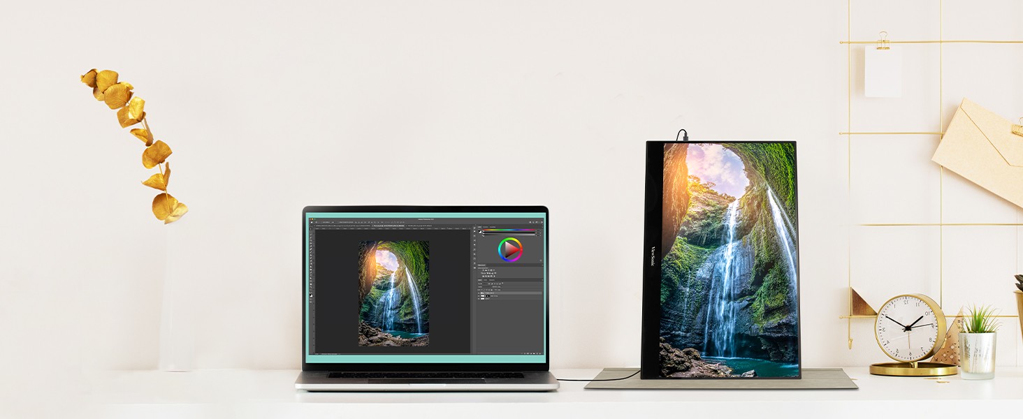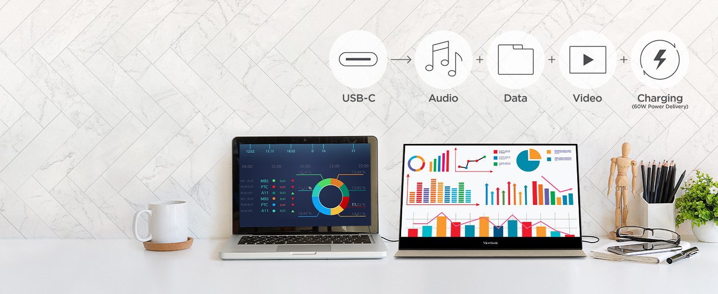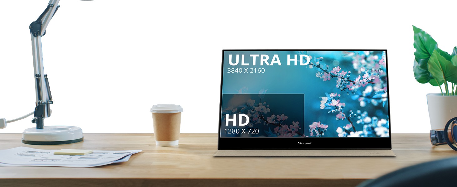 The ViewSonic ® VX1655-4K is a 15.6” portable monitor with precise 4K resolution for incredible visual performance on the go. Stunning 4K Ultra HD resolution delivers four times more pixels than Full HD monitors, so you can have the clarity and precision you need for work and play. A convenient tripod mount is integrated into the stand for additional versatility. In addition, versatile connectivity options include two USB-C ports for 2-way charging, as well as mini-HDMI and a headphone jack. Measuring less than an inch thick and weighing under two pounds, the ultra-slim VX1655-4K perfectly fits into any bag, briefcase, or backpack so you can work wherever life takes you.