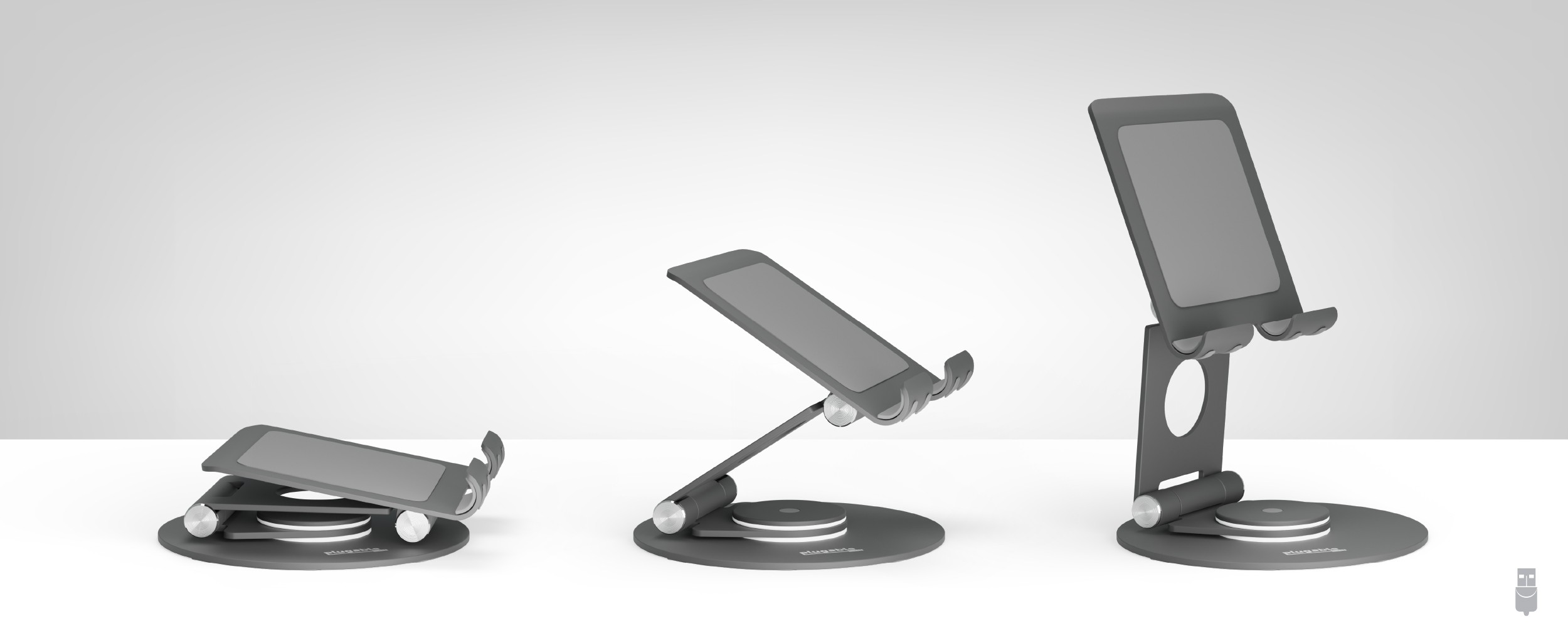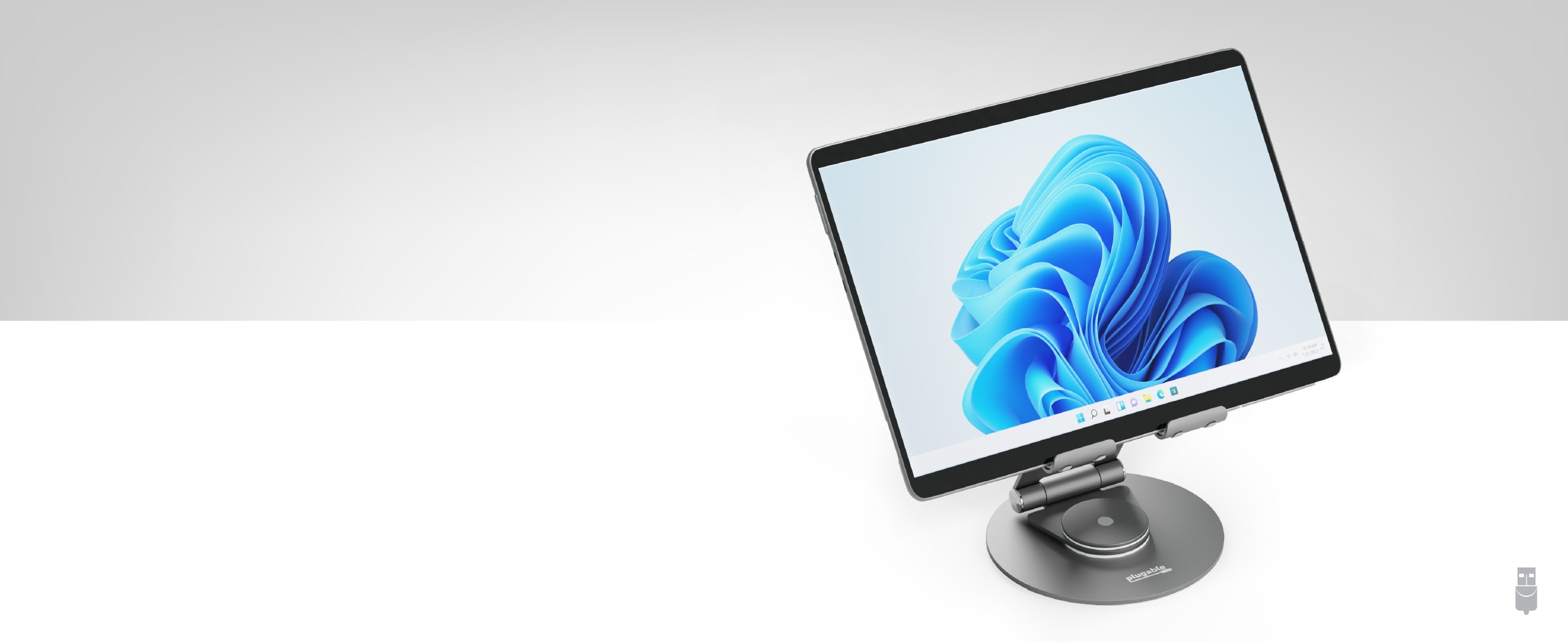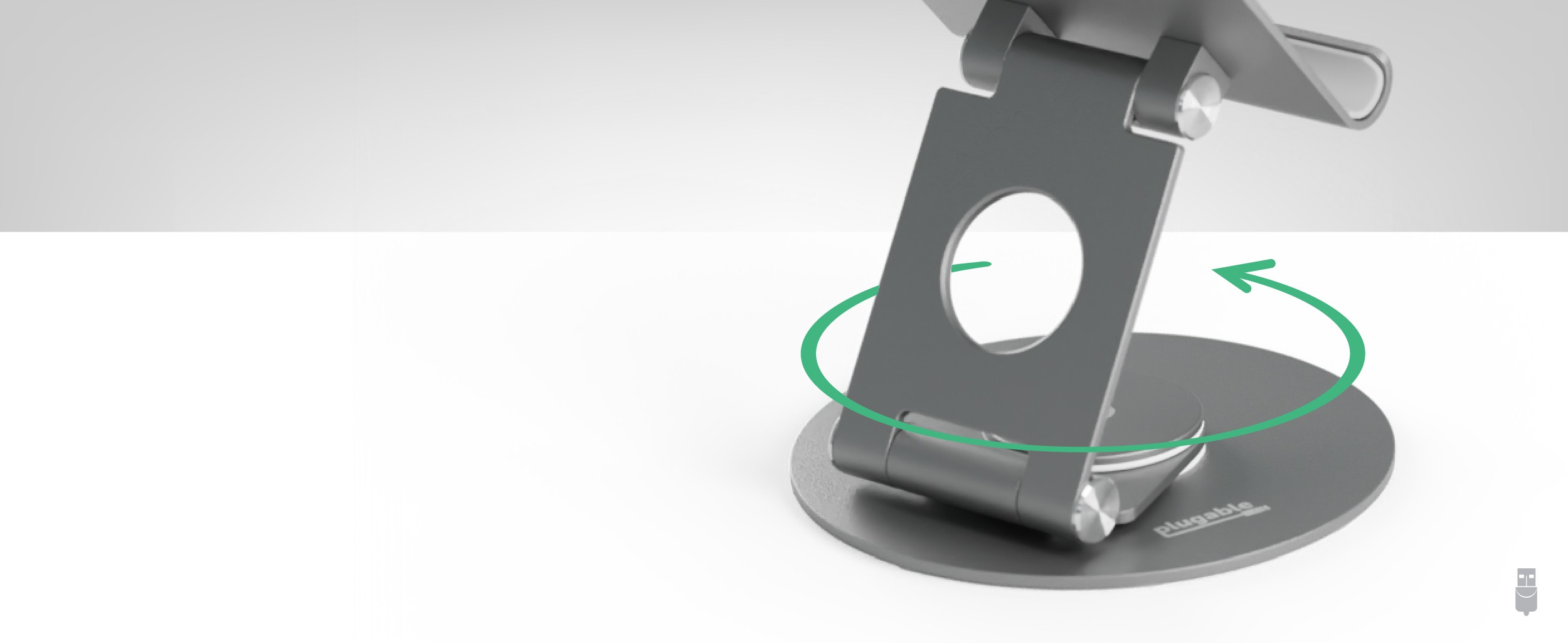 Plugable Universal Tablet Stands (PT-STAND1) offer a universal blend of versatility and convenience. Designed to support all phones and tablets up to 12.9 inches, the aluminum alloy stand features a 360° rotating base, and two 180° joints so you can find the perfect view for both work and entertainment.