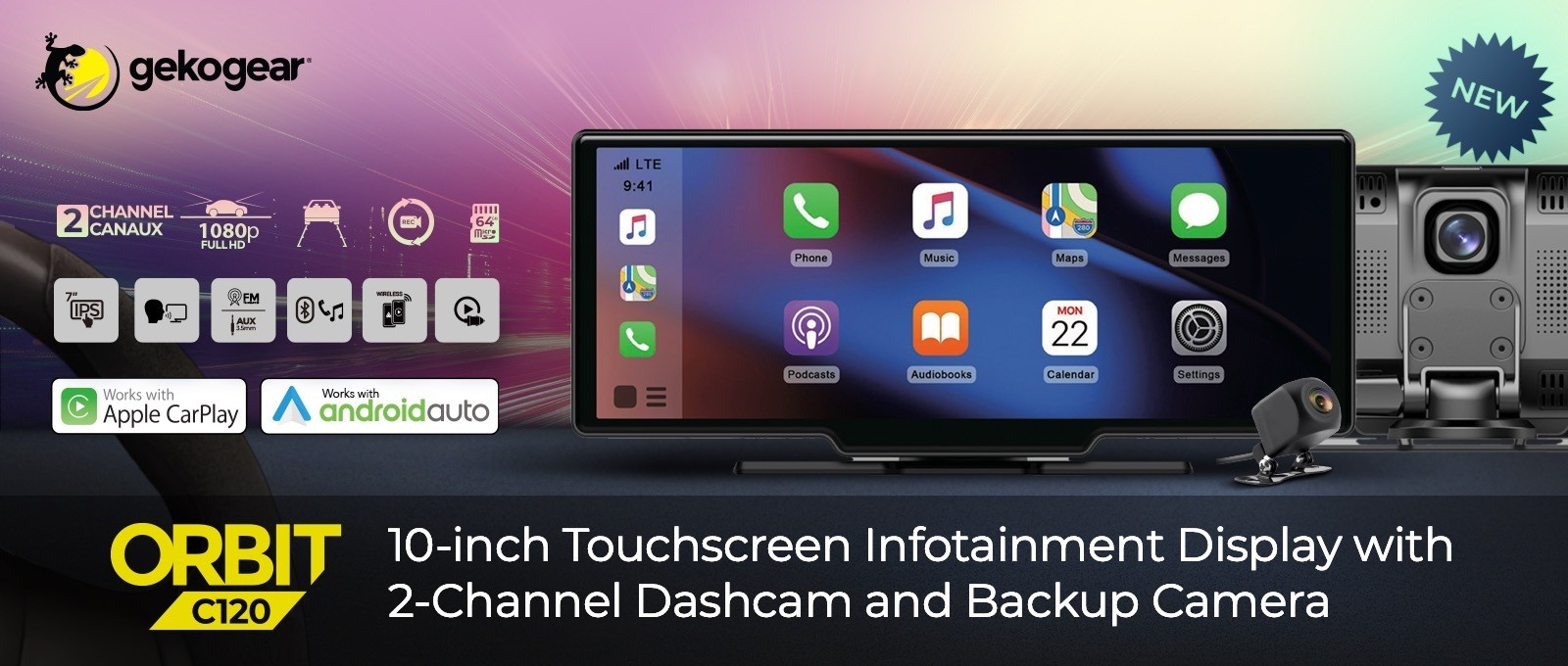 Experience the ultimate in widescreen infotainment and dash-cam recording with the Orbit C120. It merges the advantages of a 2-channel dash cam with a cutting-edge 10″ touchscreen infotainment system, enabling you to wirelessly connect your mobile phone for instant access to Apple CarPlay or Android Auto.