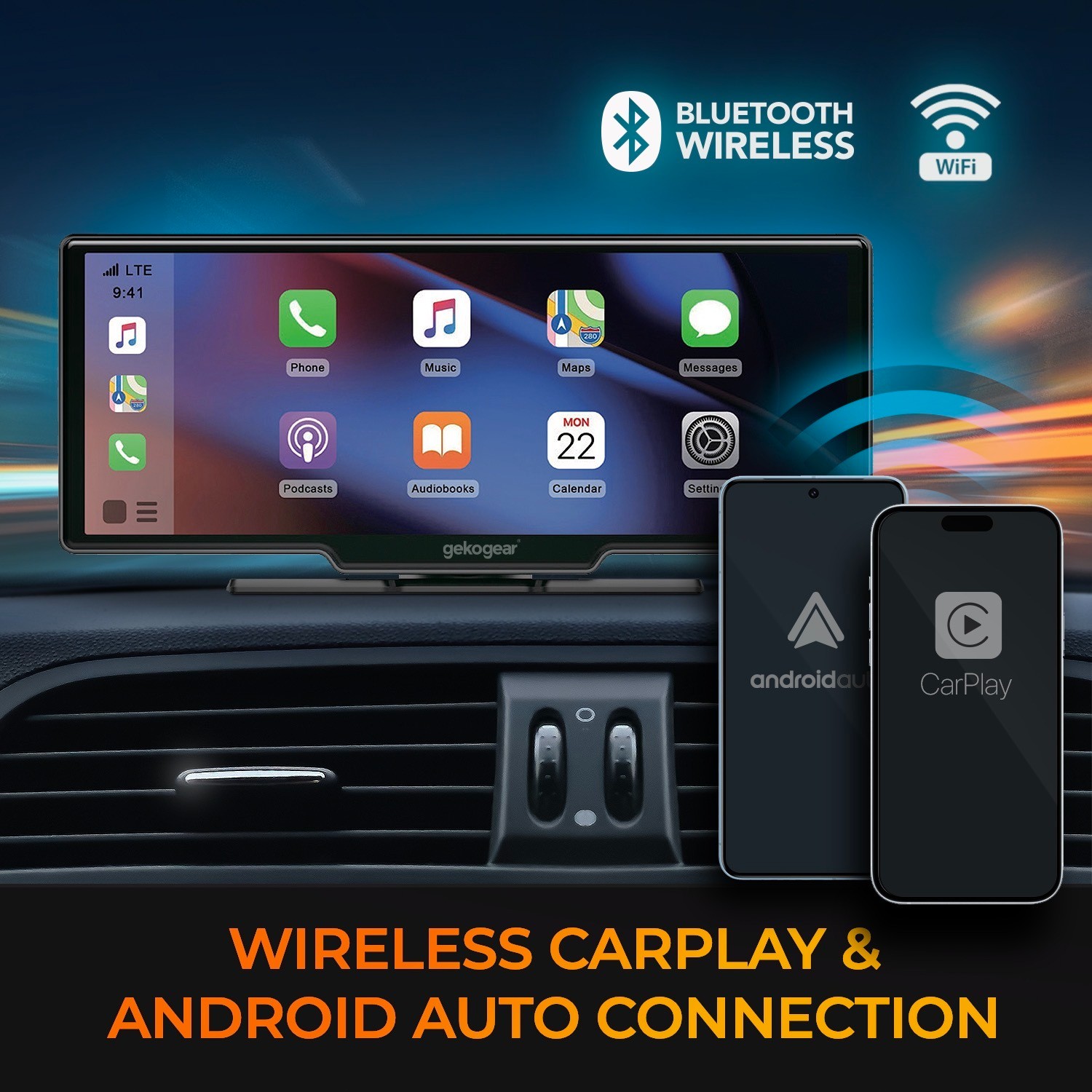 Works Wirelessly with Apple CarPlay or Android Auto